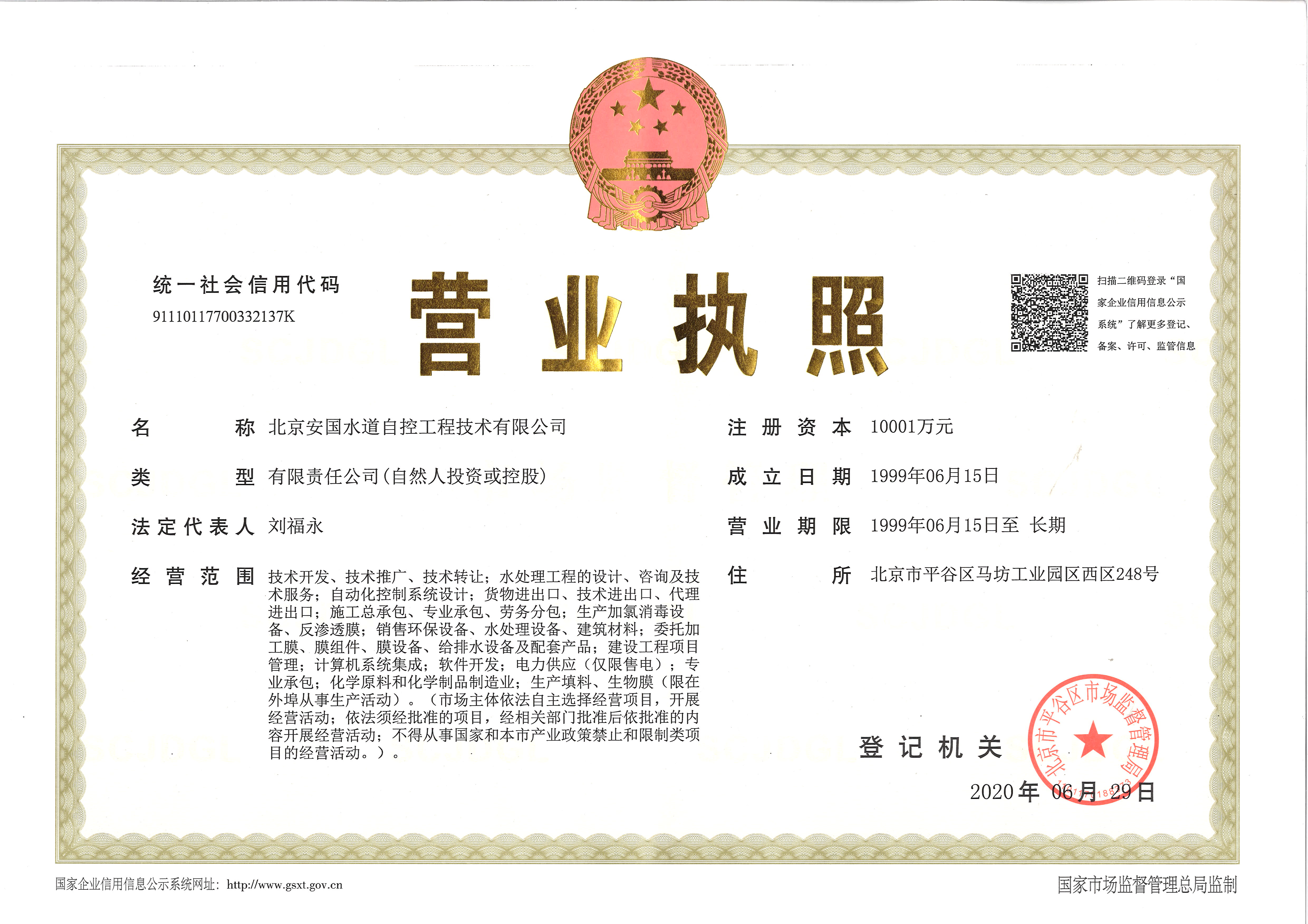 背景安國水道自控工程技術有限公司是注冊在北京市平谷區馬坊工業園區的高新技術企業,是中國水處理行業及自控領域的知名企業,在凈水廠、污水廠、循環水廠的水處理方面擁有國內領先的工藝技術及調試經驗。